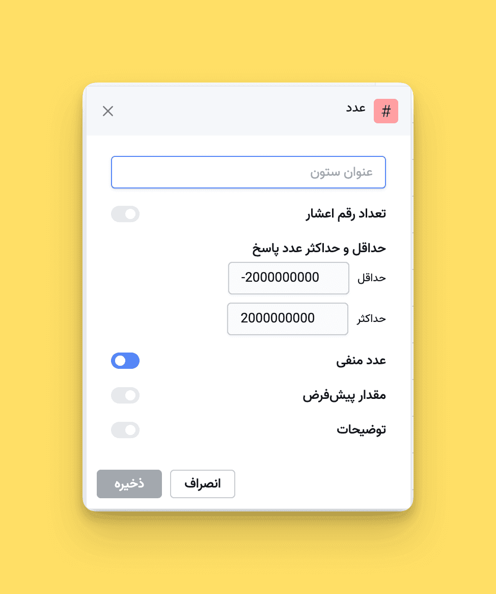 با روشن کردن تاگل عدد منفی امکان وارد کردن اعداد منفی را در جدول ایجاد کنید.