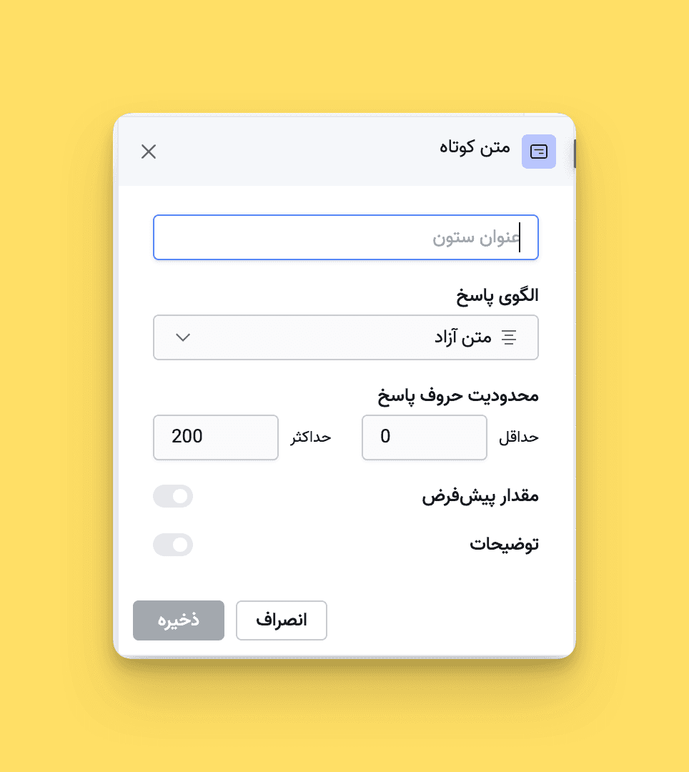 در نوع ستون متن کوتاه میتوانید الگوهای پاسخ زیر را تعریف کنید: