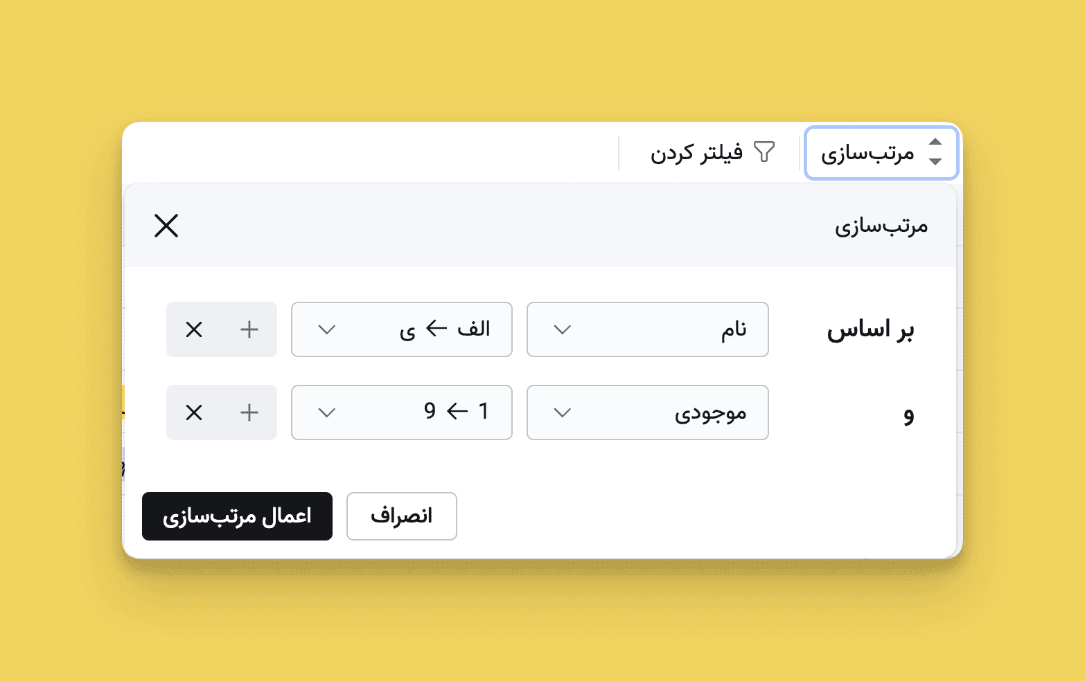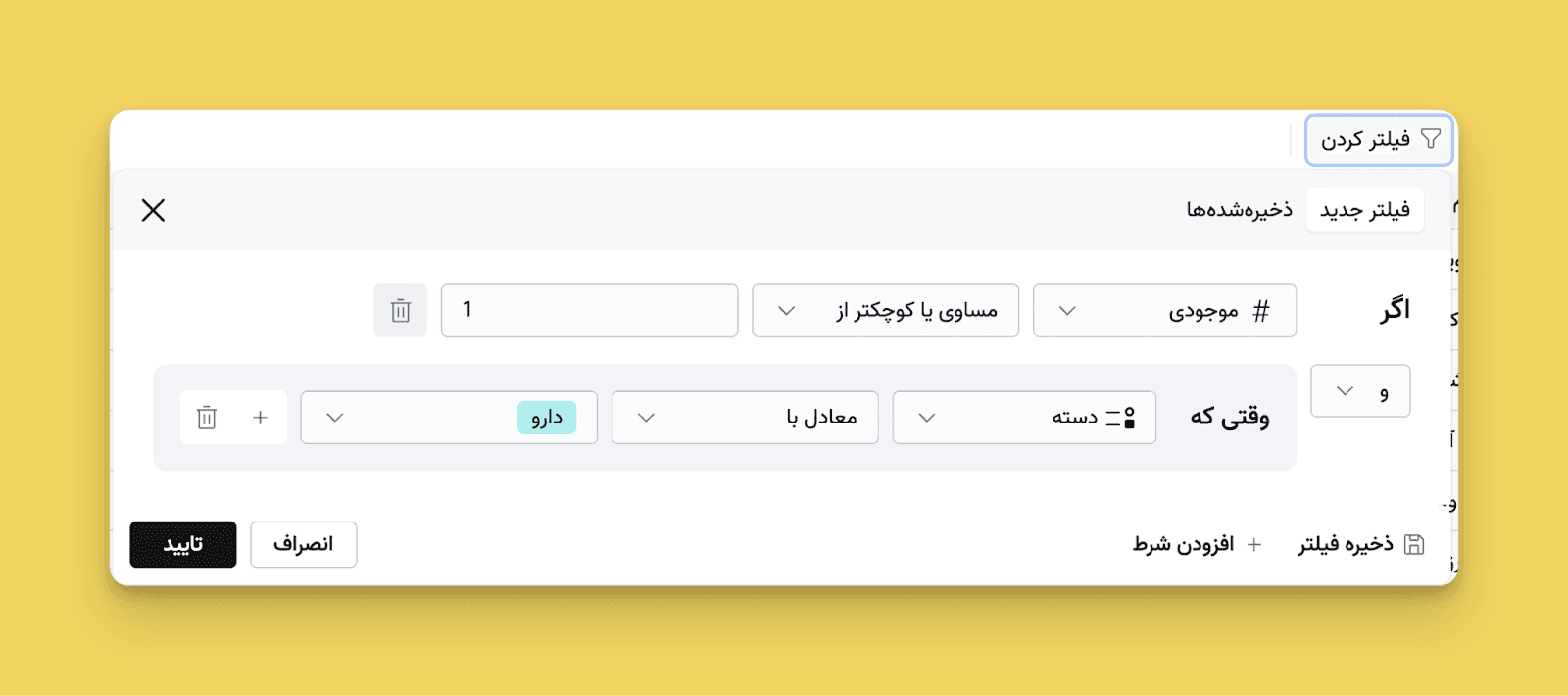 از گزینههای و/یا در تنظیمات فیلتر برای ایجاد فیلترهای پیچیده استفاده کنید.